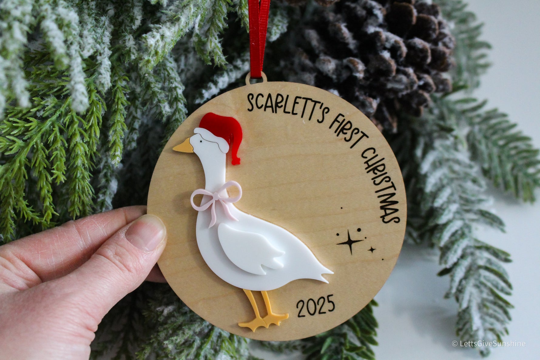 Personalized Baby’s First Christmas Goose Ornament- 2025