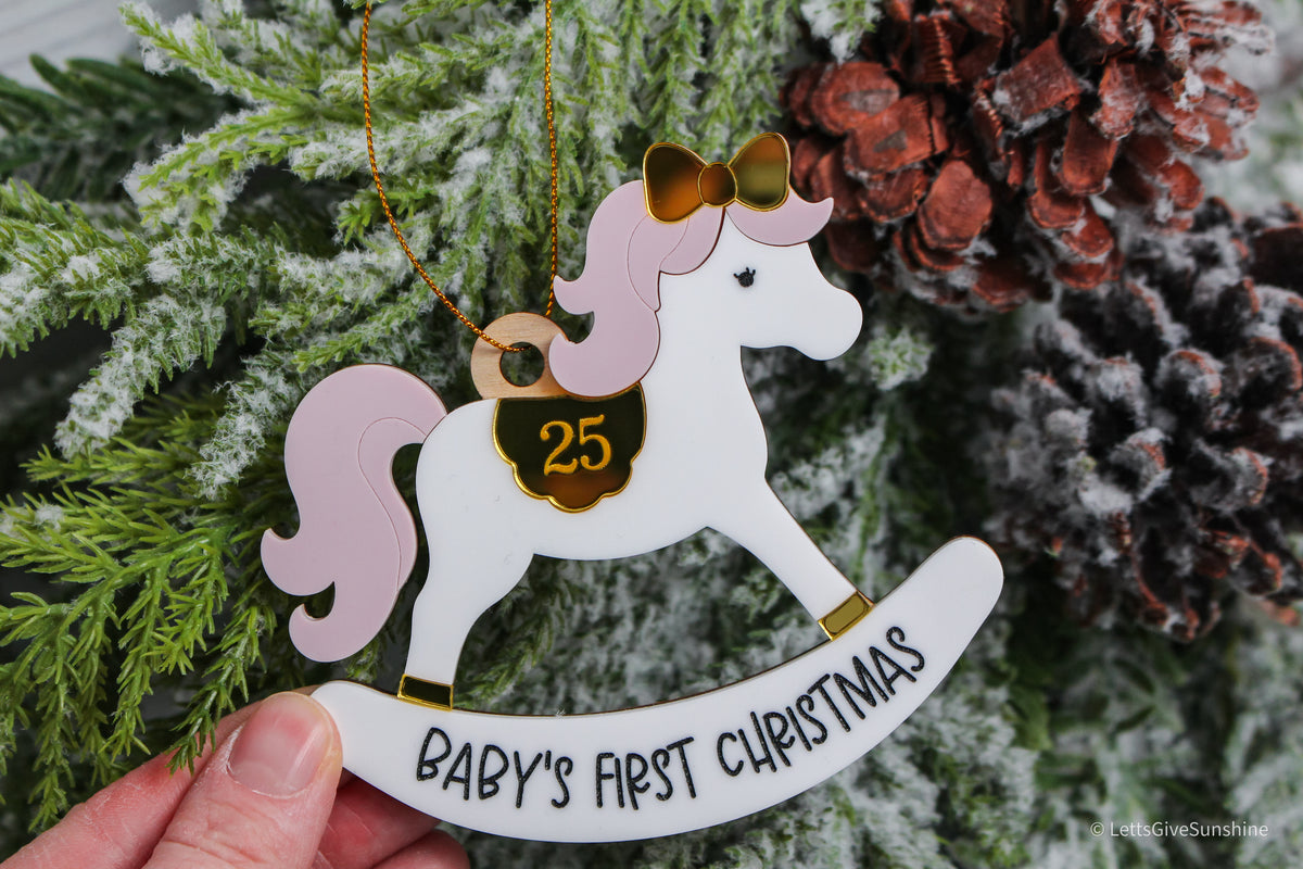 Personalized Rocking Horse Christmas Ornament- Pink or Blue