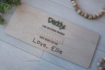 Perfect for babies, toddlers, and little kids, this engraved wooden board creates a meaningful, one-of-a-kind Father’s Day gift that Dad will treasure for years.