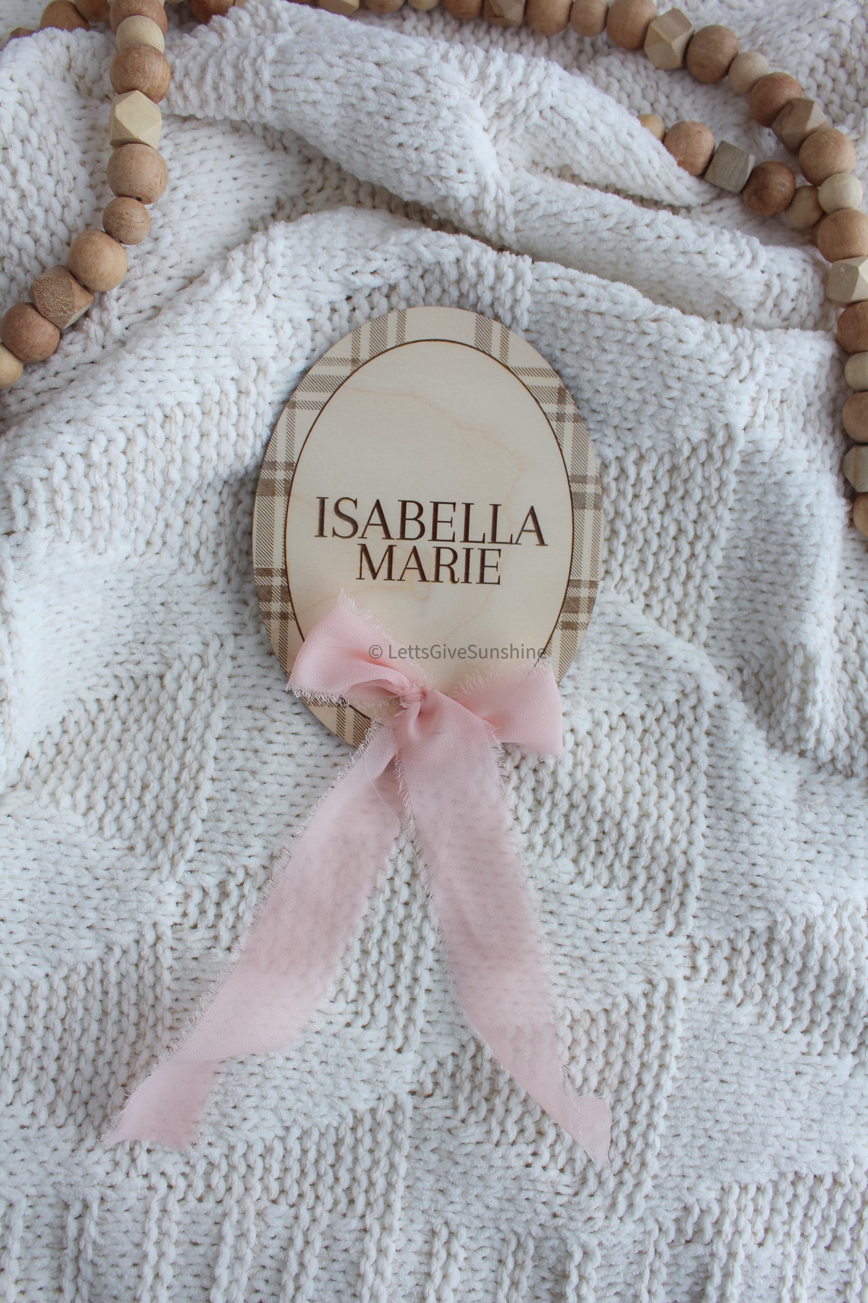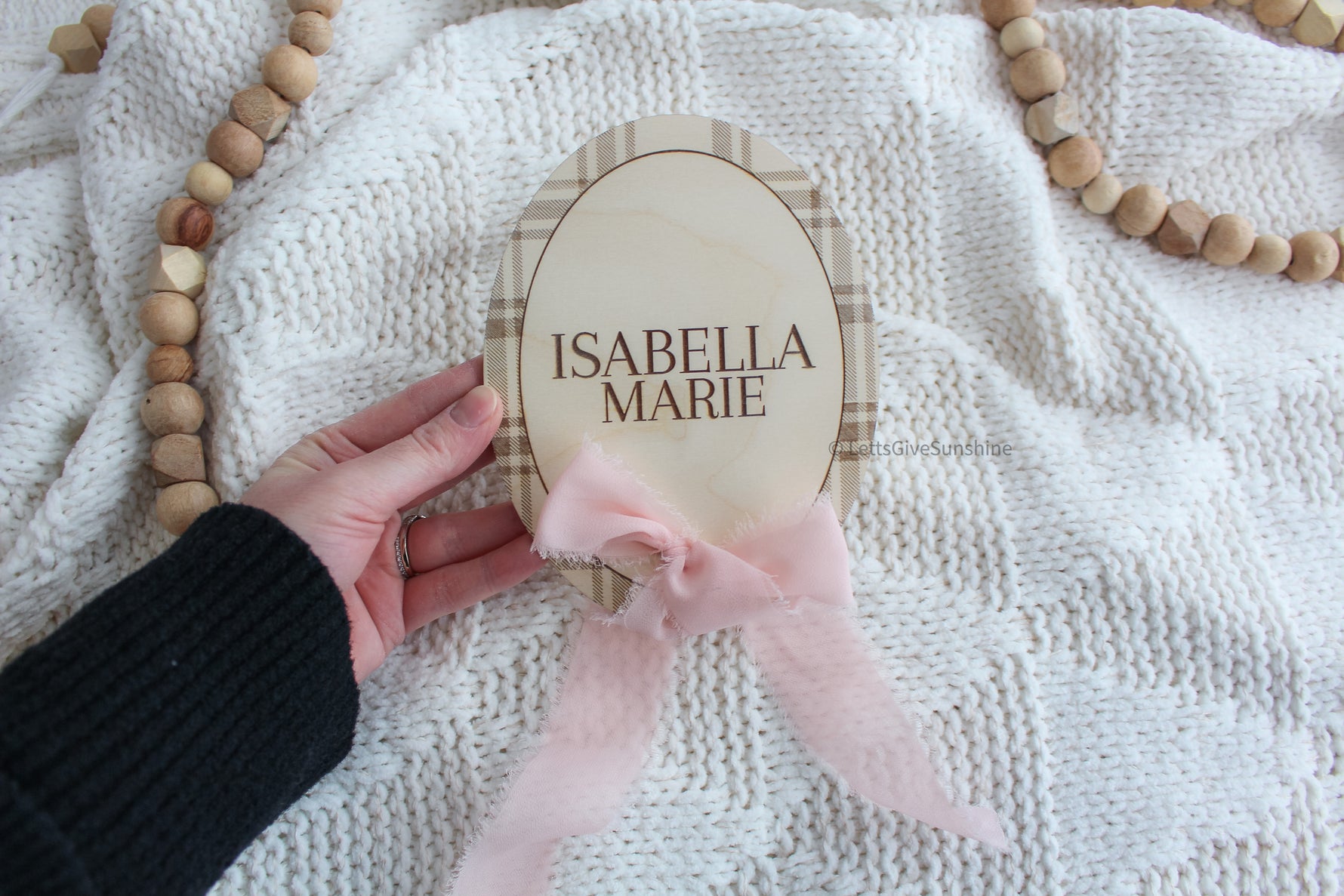 Personalized Baby Name Announcement Plaque | Plaid with Ribbon