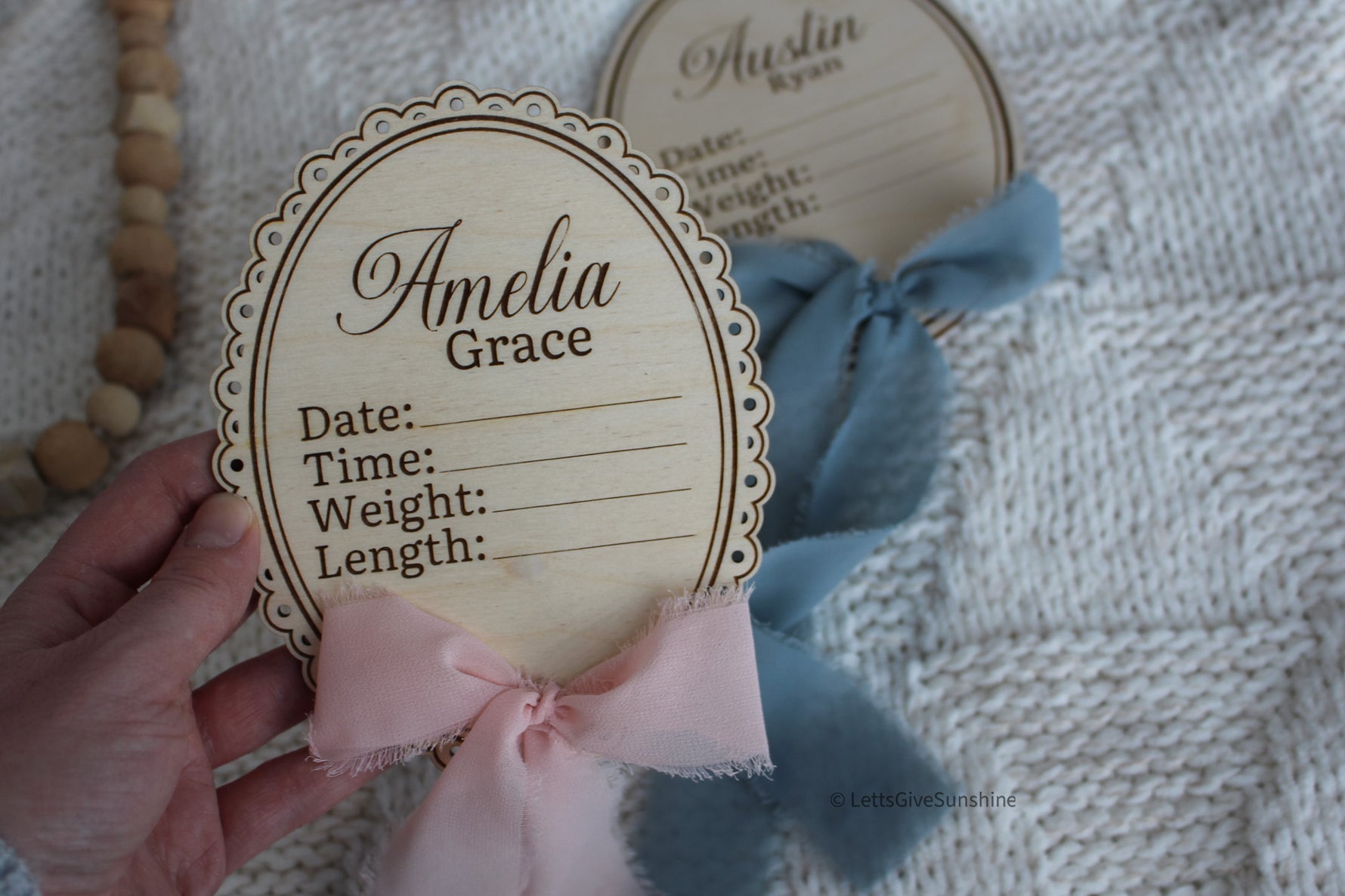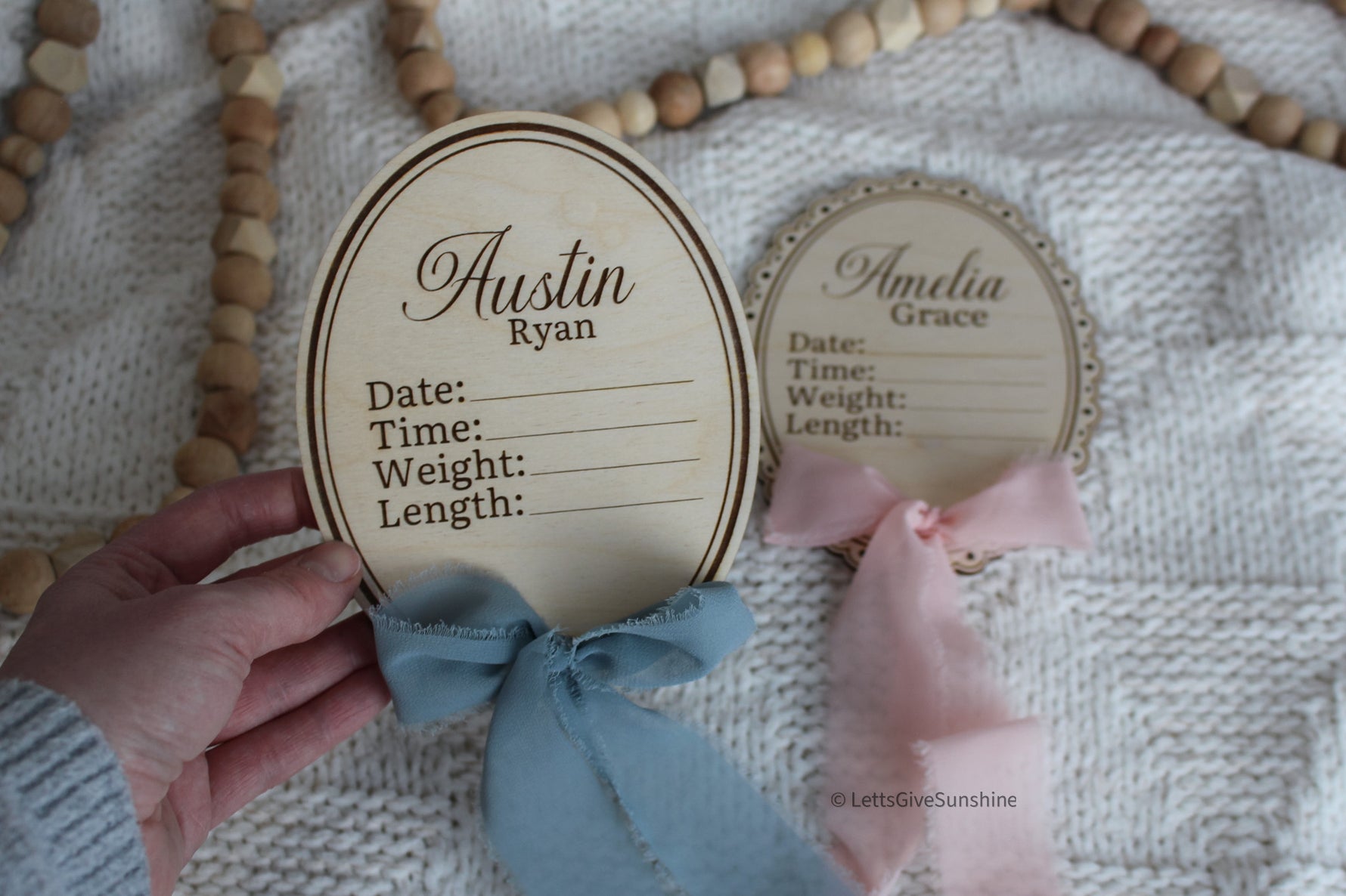 Personalized with your baby’s first and middle name, this plaque is a timeless way to document their arrival.