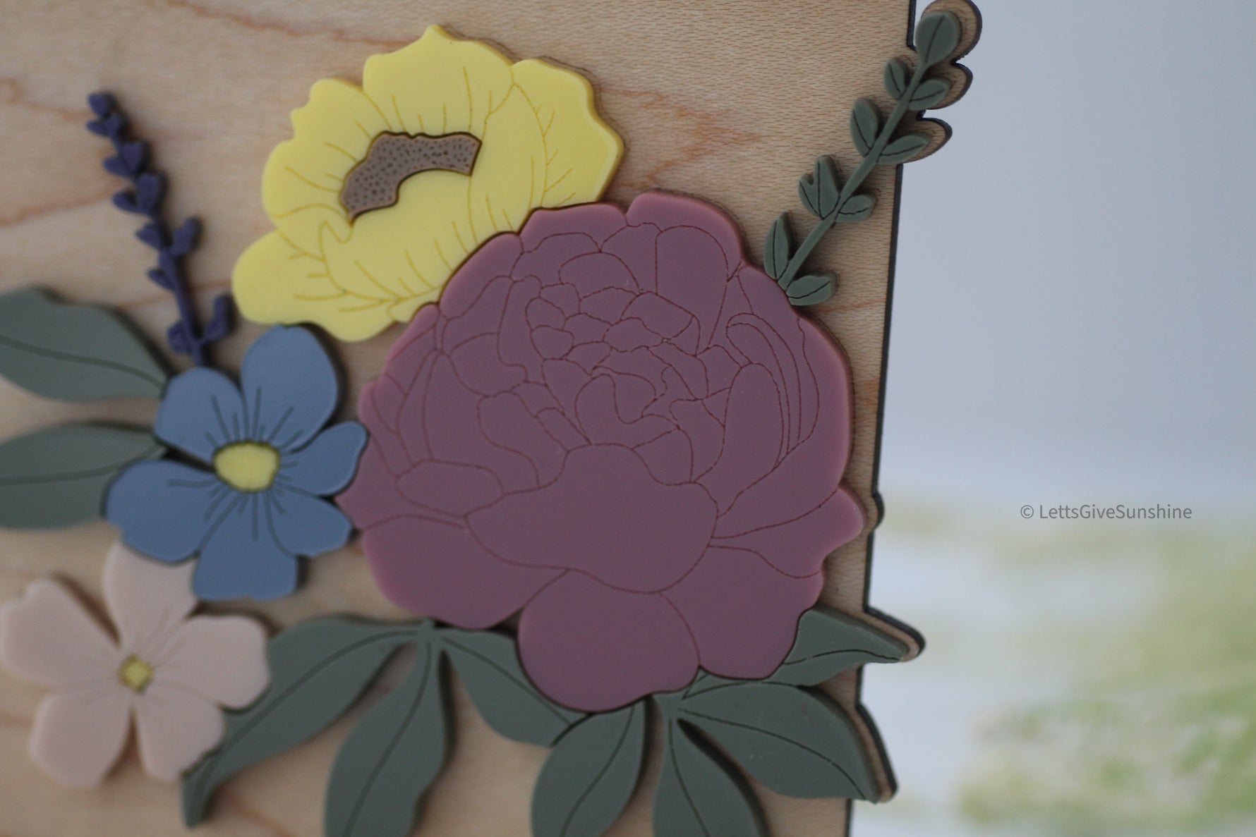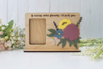 This floral photo frame is cut from maple, engraved and finished with layered acrylic floral details that add texture, color, and a soft, elevated look you don’t usually find in standard frames.