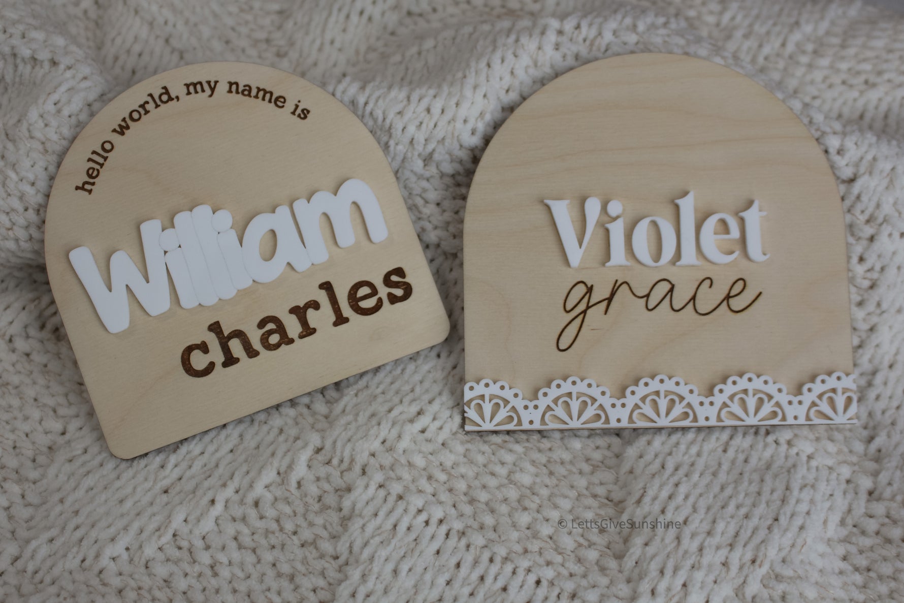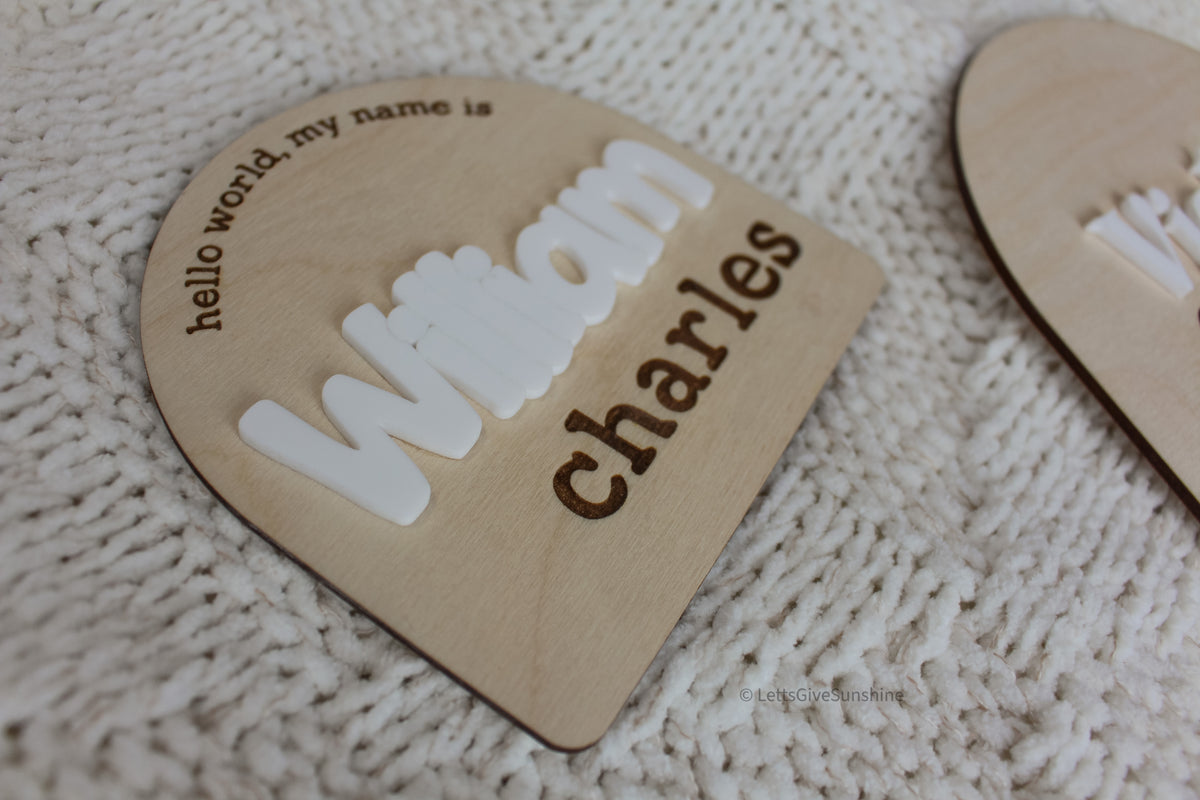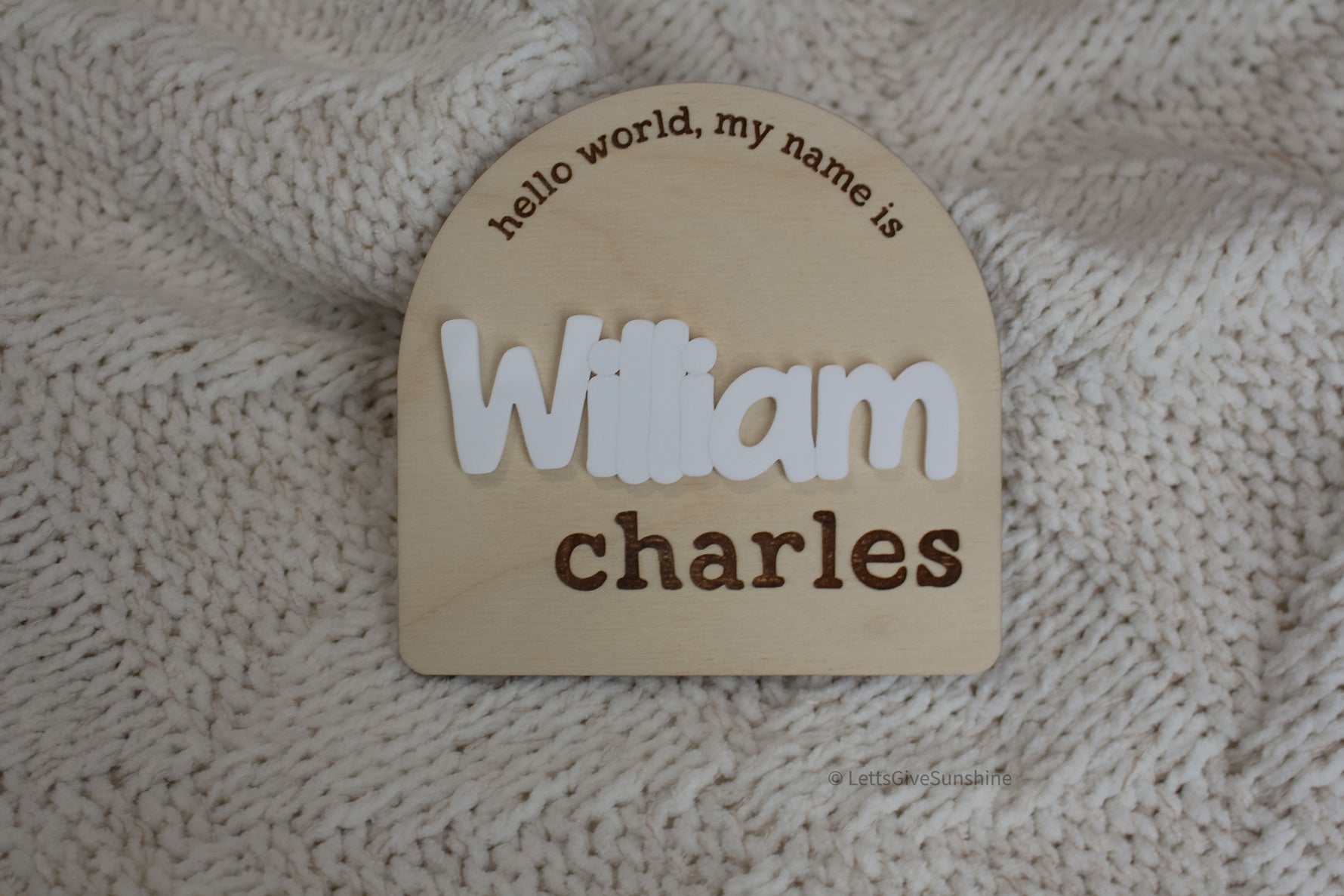 Featuring a layered design with a raised first name and engraved middle name, it adds warmth, texture, and meaning to your baby’s space.