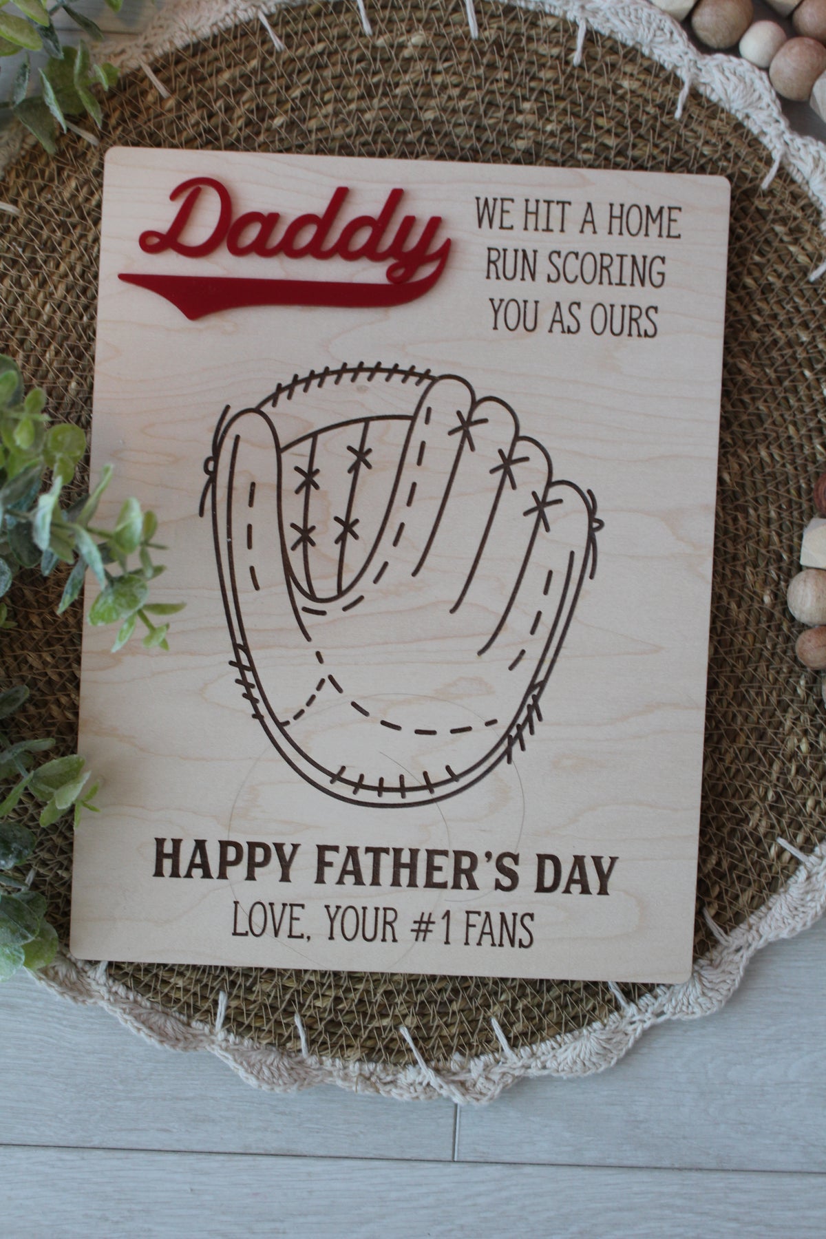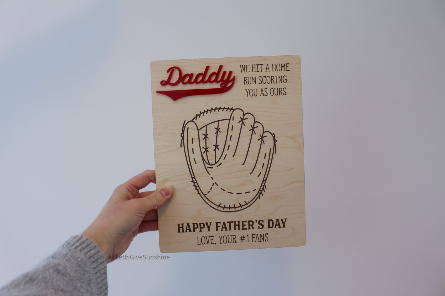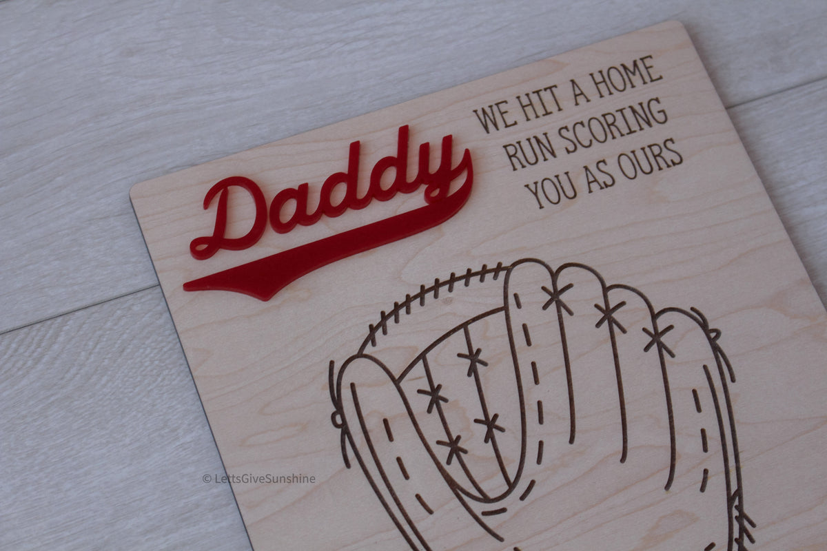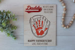 Featuring a laser engraved baseball glove design and bold “Daddy” detail, this sign is made to capture a moment in time, tiny hands that won’t stay little for long ❤️